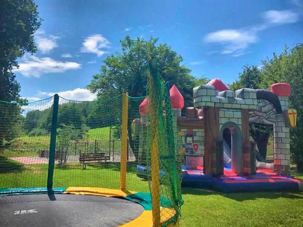 Durant la saison et selon la météo, vous profitez des animations : château gonflable, trampoline et terrain multisport et aire de jeux.